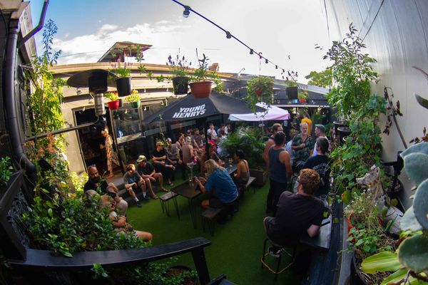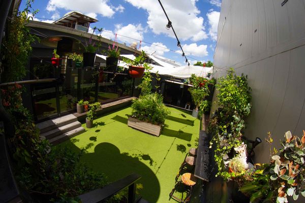 Perched above the vibrant streets of Newtown, the rooftop at the Botany View Hotel offers a relaxed urban oasis with a laid-back vibe. The space is open-air, filled with lush greenery, cozy seating, and festoon lights that create a warm ambience as the sun sets. It’s the perfect spot for an afternoon drink, weekend catch-ups, or sunset dining.